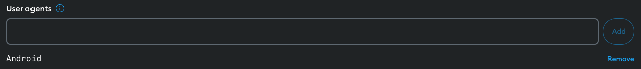 To limit access to your application to specific user agents, add them to the User agents allowlist.